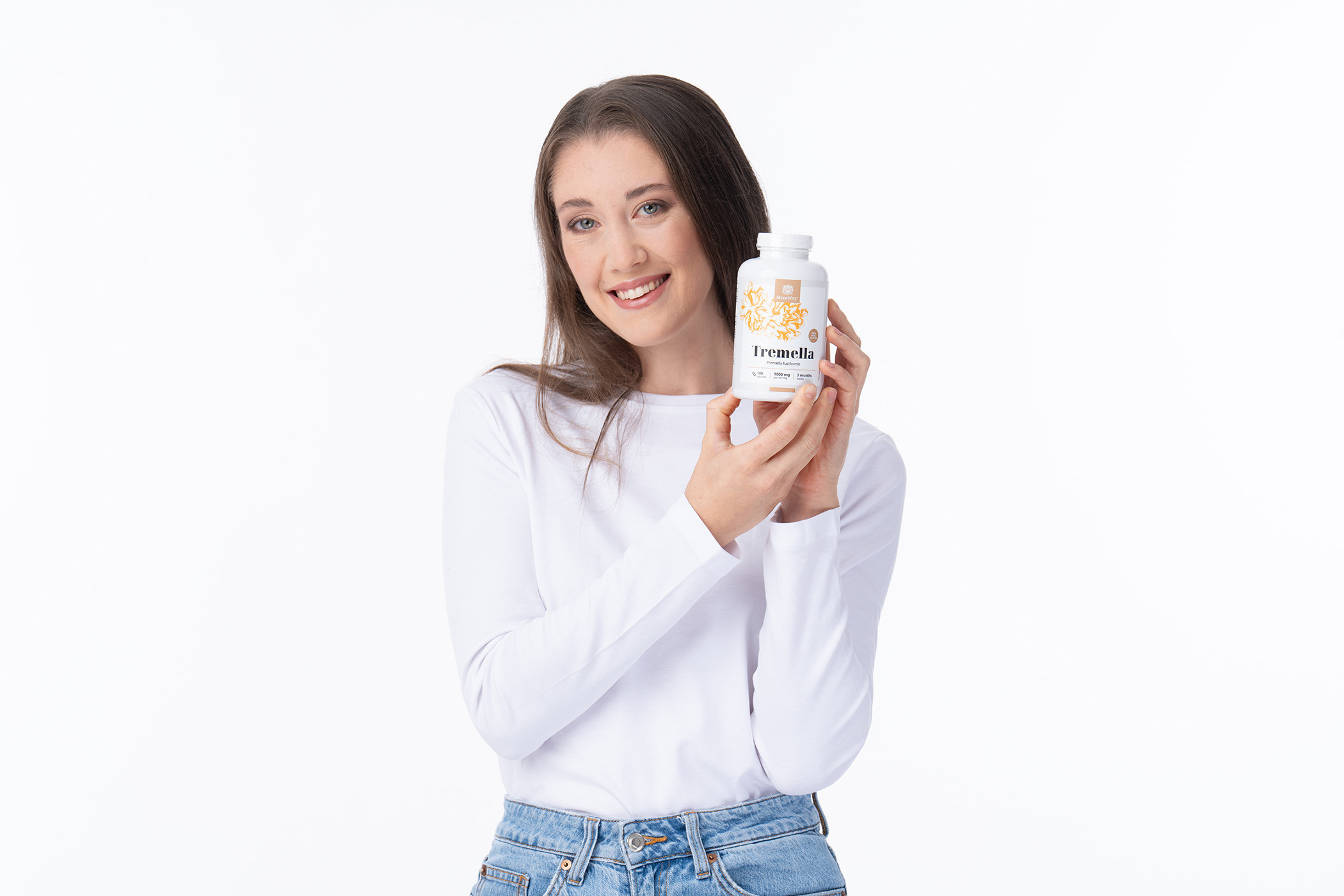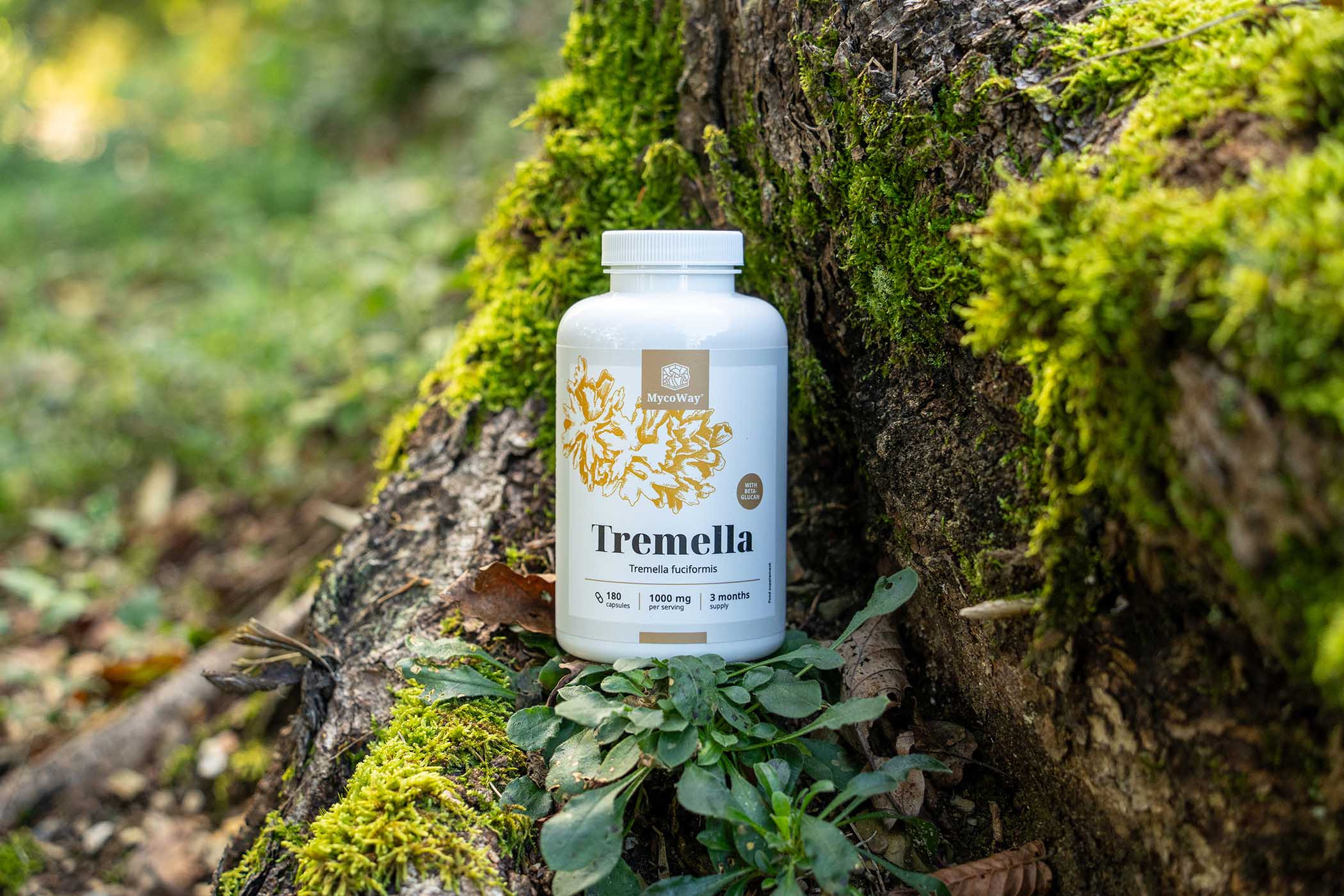 Zloženie: extrakt huby tremella v prášku (Tremella fuciformis), mikrokryštalická celulóza, oxid kremičitý, rastlinná kapsula (HPMC; hydroxypropylmetylcelulóza).